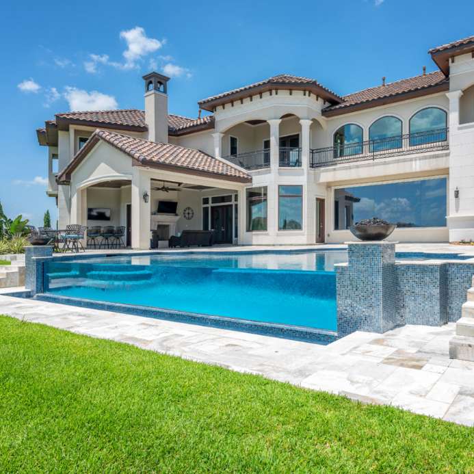 The common shape of the swimming pool is rectangular because the rectangle can better execute the space planning and match the villa's architectural design, allowing us to have a larger activity area. However, if the villa's outdoor area is not large enough, the swimming pool can also be made into a ring, and a small pavilion can be built in the middle of the pool. This design is also full of personality.
